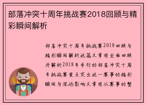 部落冲突十周年挑战赛2018回顾与精彩瞬间解析